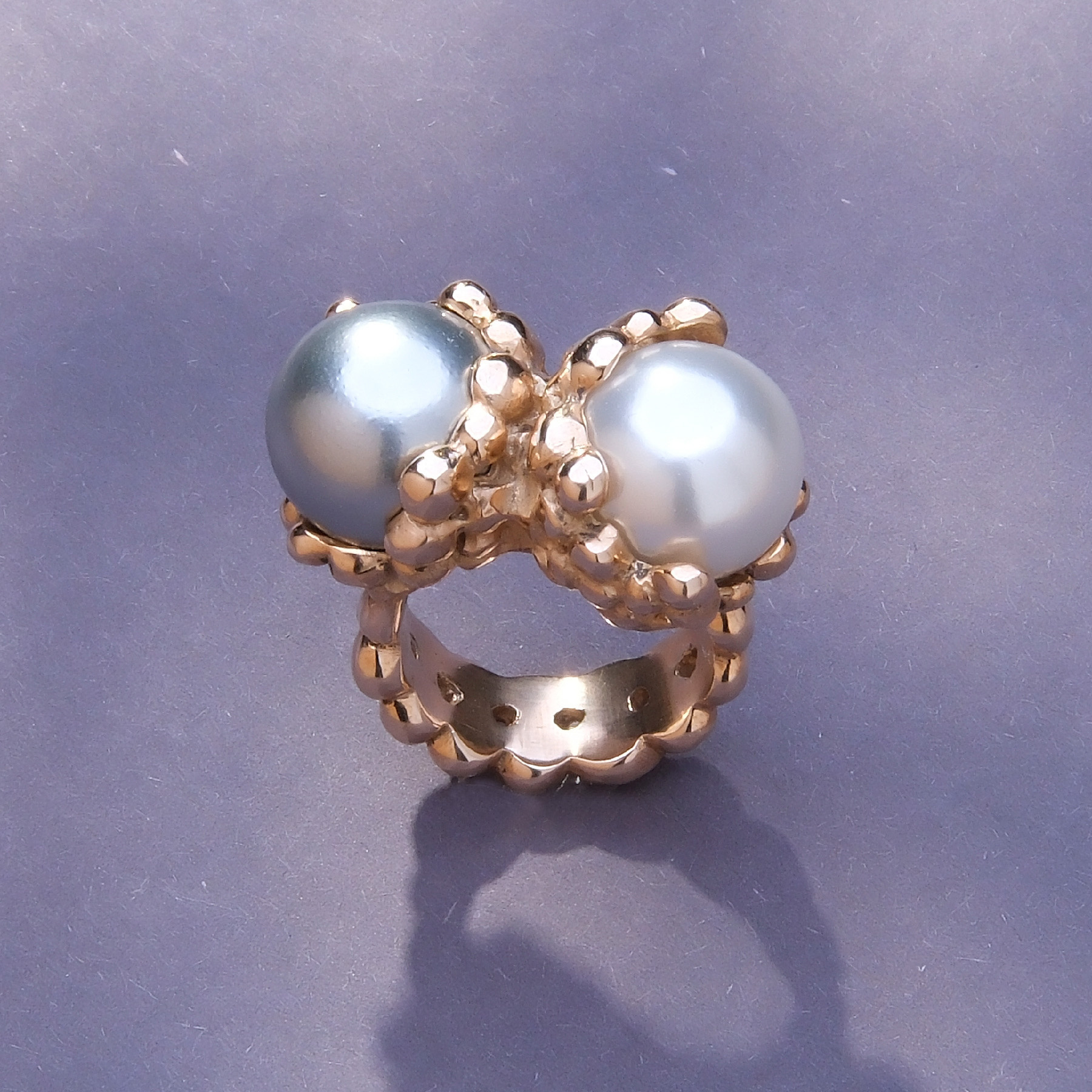 Pozłacany pierścionek z białą i srebrną perłą w oprawie