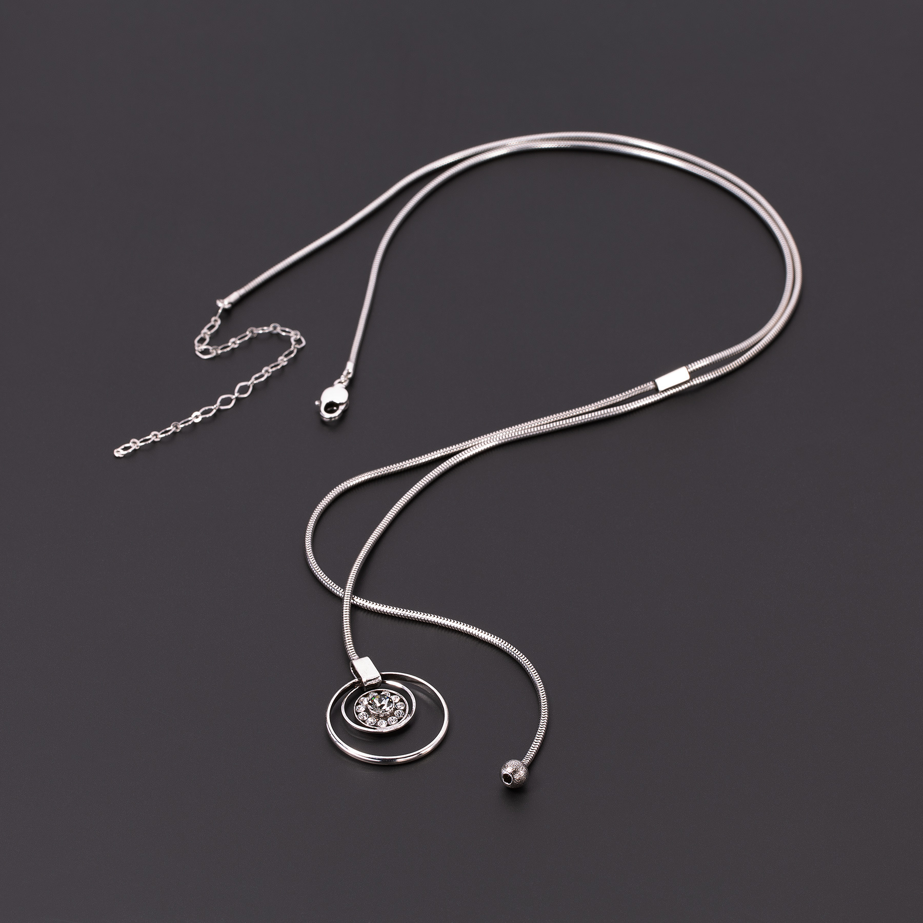 Srebrzony naszyjnik na żmijce z zawieszką z kryształkami
