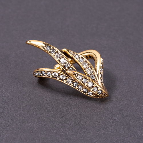 Lewa pozłacana nausznica w formie piór z kryształami
