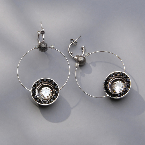 Małe srebrzone kolczyki z białym i czarnymi kryształami